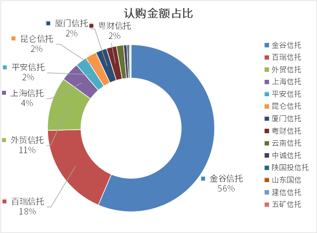 今年上市公司认购的信托产品共涉及14家信托公司,其中金谷信托占比过半,百瑞信托、外贸信托占比在10%以上。从目前有数据的收益率情况来看,预期年化收益率在2%-5.9%之间。